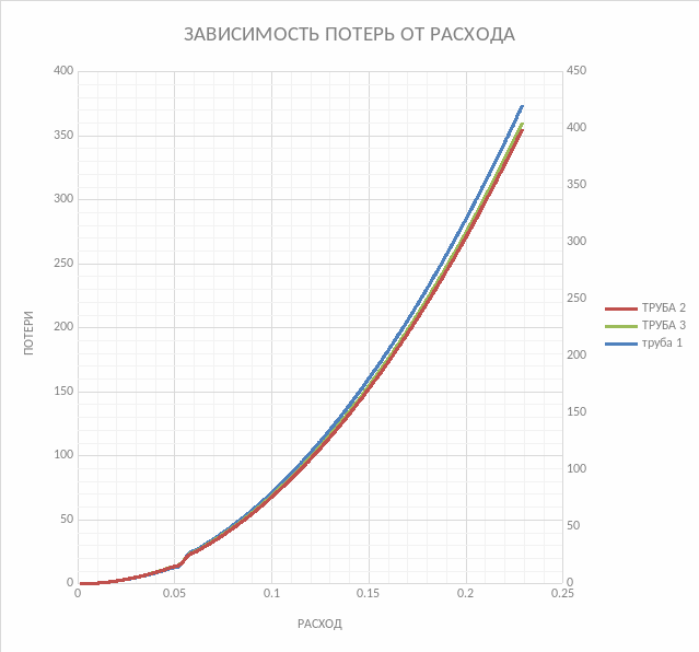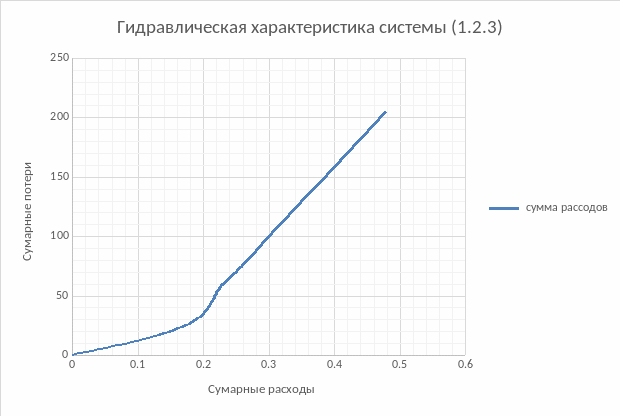 На основе данных из графика 1. Найдем гидравлическую характеристику системы (суммарный расход) труб (1.2.3) и внесем данные в табл. 1.