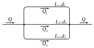 Рис. 4. Схема параллельного соединения простых трубопроводов
