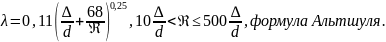 В общем случае λ является функцией числа Рейнольдса (Re) и относительной шероховатости стенок трубы Δ/d. Здесь Δ – абсолютная шероховатость.