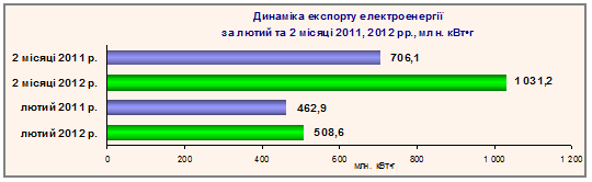 експорт передано 508,6 млн. кВт∙г електроенергії, що на 45,7 млн. кВт∙г,