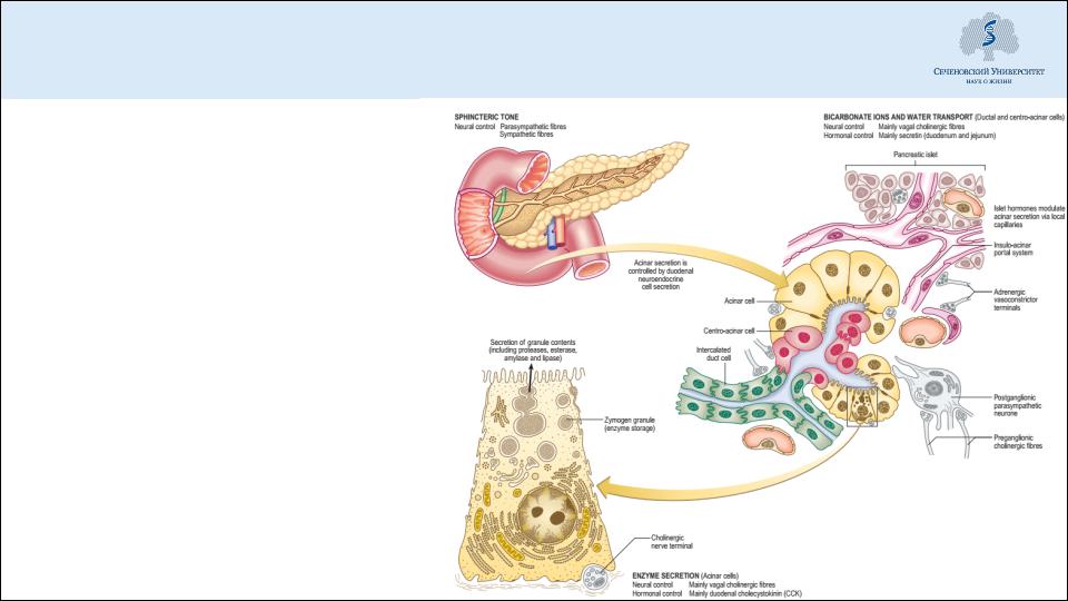 •Синтез ферментов, участвующих в расщеплении белков, жиров и углеводов: