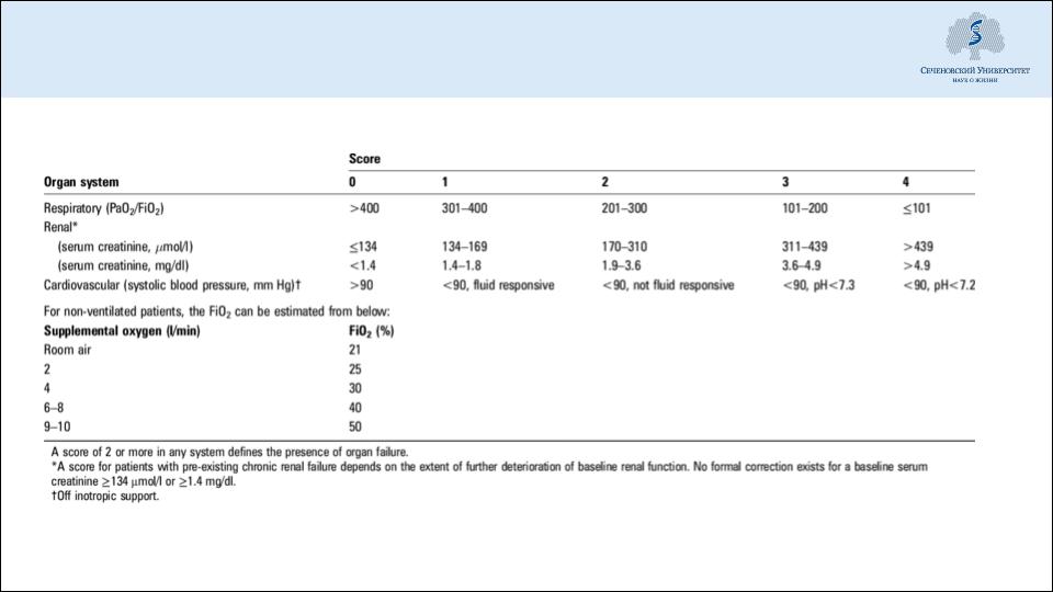 Шкала Marshall. ≥2 балла = органная недостаточность