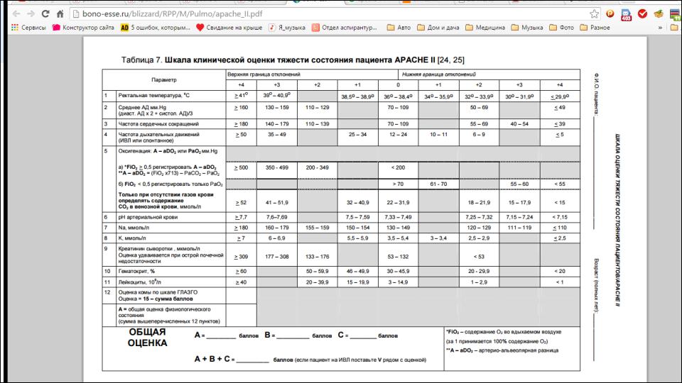 Диагностика: шкала APACHE II