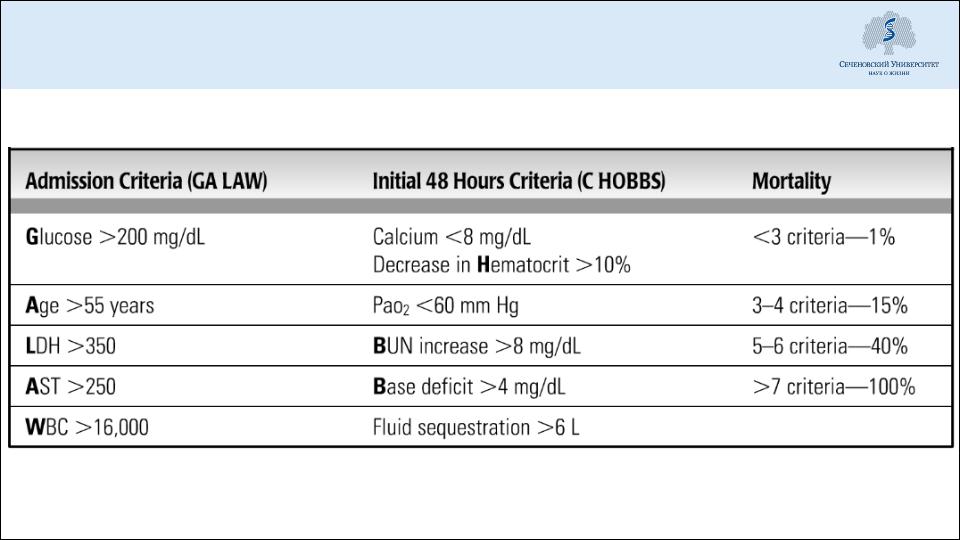 Диагностика: критерии Ranson