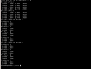 MPI_Barrier(MPI_COMM_WORLD); MPI_Recv(B, N*N, MPI_INT, 0, 0, MPI_COMM_WORLD,