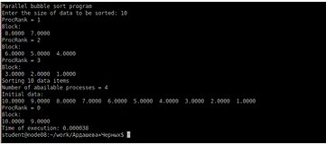 разработаны последовательный и параллельный алгоритмы для сортировки данных.