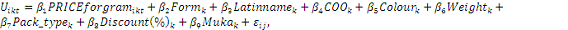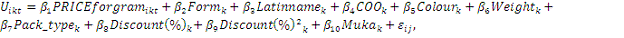 В настоящем исследовании под теми, кто совершает выбор, понимаются домохозяйства. Это обосновано тем, что торговая сеть выдает дисконтные карты в трех экземплярах, то есть вся семья пользуется "одной" дисконтной картой с "одним" штрих-кодом и в данных это будет один индивид. Также неизвестно, удовлетворяет ли поведение домохозяйств предположениям, используемым для вывода (4). Тем не менее, понятие полезности (предпочтений или привлекательности) в качестве латентной переменной и вероятность выбора, как некоторая нормированная функция этой переменной, часто применяется исследователями (Yellott, 1977; McFadden, 1981).