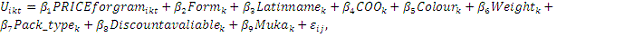 Детерминированная составляющая полезности альтернативы k покупателя будет