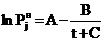 Из (18) видно, что температурная зависимость парциального давления насыщенного пара j-того вещества, полученная теоретически, является экспоненциальной функцией 3-х параметров, величины которых зависят от давления при температуре 00С, сил межмолекулярного взаимодействия в жидкости и собственной энергии молекул.