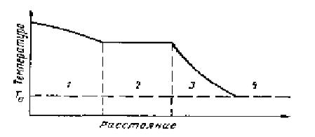 Рис.31Схема распределения температуры в пласте при нагнетании в него водяного пара. Зоны: 1 – перегретого пара: 2 – насыщенного пара; 3 –