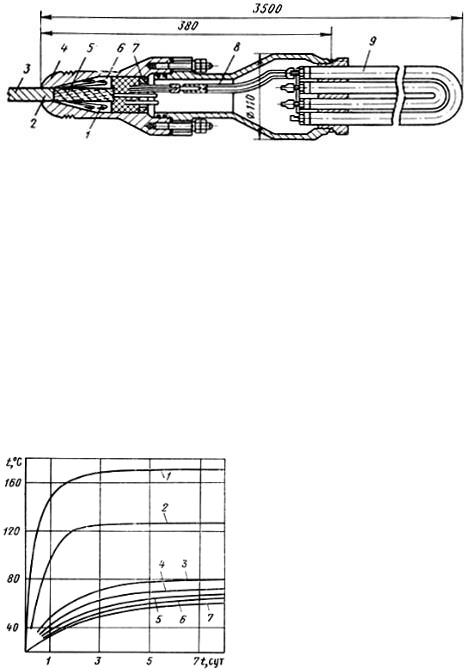 нажимная гайка; 8 - клеммная полость; 9 - нагревательпые трубки.