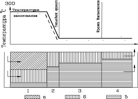 На участке зоны 2, примыкающей к зоне 1, температура несколько ниже, чем температура парообразования. В этой зоне, размеры которой небольшие, пары воды и газообразные углеводородные фракции из-за