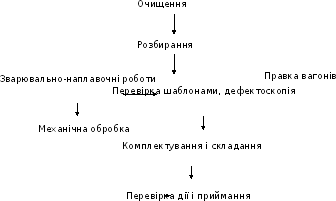 Рис.2.2 Схема технологічної послідовності робіт, які виконуються при ремонті автозчепного пристрою.
