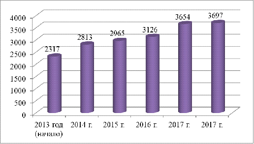 Рисунок 3.4. Прогноз рынка межбанковского кредитования в динамике 2013-2017 гг., в млрд. руб.