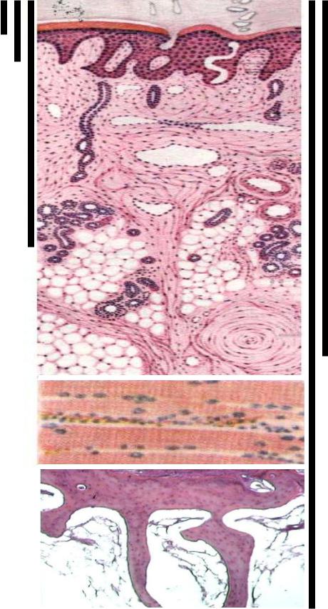 Рис. 70. Микропрепарат кожи при ожоге II степени:
