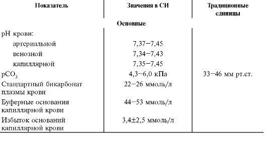 Показатели КЩР подразделяют на основные и дополнительные Основные показатели. Оценку КЩР и его сдвигов в клинической практике проводят с учётом нормальных диапазонов его основных показателей: pH, pCO2, стандартного бикарбоната плазмы крови, буферных оснований и избытка оснований капиллярной крови.• Дополнительные показатели. С целью выяснения причины и механизма развития негазовых форм нарушений КЩР определяют ряд дополнительных показателей крови (КТ, МК) и мочи (титруемая кислотность - ТК и аммиак).