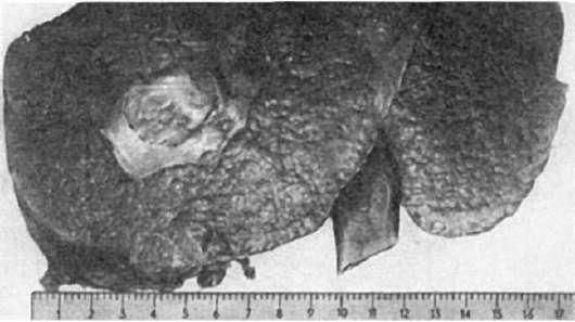 Печень при раке резко увеличена (иногда в 10 раз и более), масса ее может составлять несколько килограммов. При узловатом раке она бугристая, умеренно плотная, при диффузном раке - нередко каменистой плотности.