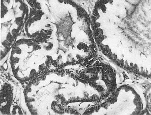 Железистая гиперплазия характеризуется увеличением железистых элементов, причем величина долек и количество составляющих ее элементов сильно варьируют. Мышечнофиброзная (стромальная) гиперплазияхарактеризуется появлением значительного числа гладкомышечных волокон, среди которых обнаруживаются атрофичные железистые элементы, дольчатость железы нарушается. При смешанной форме простатопатии имеется сочетание тканевых нарушений, характерных для первых двух видов. При этом нередко появляются кистозные образования ретенционного происхождения.