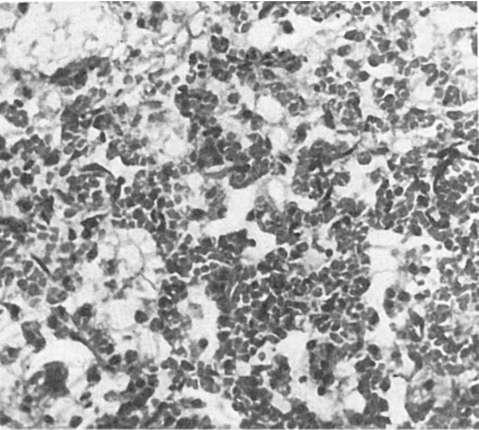 лимфоидными клетками, иногда обнаруживаются гиалиновые мембраны. В ряде случаев пневмония имеет характер геморрагической. В цитоплазме бронхиального и альвеолярного эпителия имеются включения вируса. Воспалительные, некробиотические и десквамативные процессы в легких сочетаются с регенераторными.