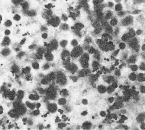 инфильтрат, также состоящий преимущественно из распадающихся нейтрофилов, как бы нанизанных на нити псевдомицелия. У ослабленных больных очажки имеют не гнойный, а некротический характер. При недостаточной сопротивляемости организма по периферии лейкоцитарного инфильтрата образуется вал из грануляционной ткани, в которой грибы обнаруживаются редко. Если заболевание растягивается во времени, преобладает продуктивная реакция, появляются гранулемы, состоящие главным образом из макрофагов, фибробластов и гигантских многоядерных клеток, содержащих в цитоплазме обрывки нитей и почкующиеся формы гриба.