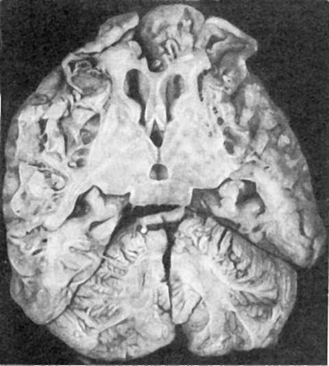 крайней ее степени полушария большого мозга превращаются в два пузыря, наполненные мутной жидкостью.