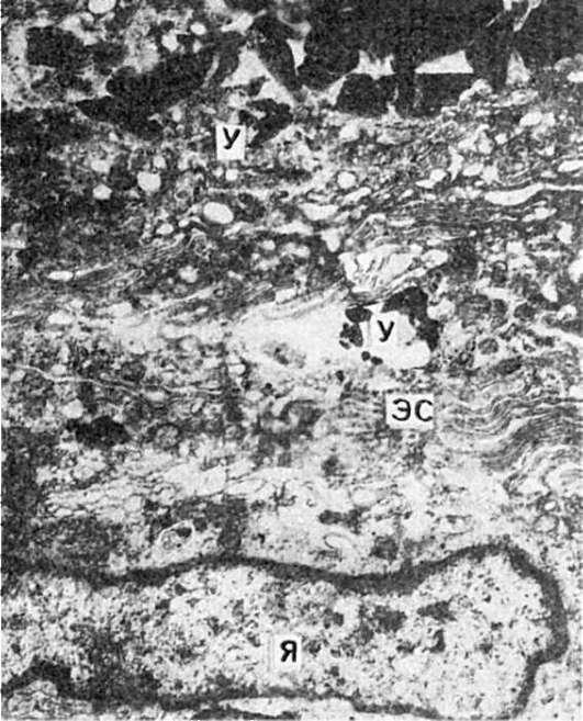 цитоплазме; расширение канальцев эндоплазматической сети (ЭС). Я - ядро макрофага. х14 000 (по Поликару)