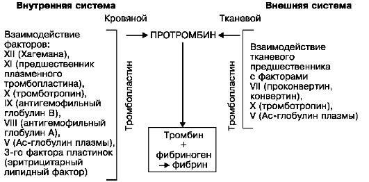 (кровь) и внешнюю (ткань) свертывающие системы. Взаимоотношения внутренней и внешней систем представлены на схеме VIII.
