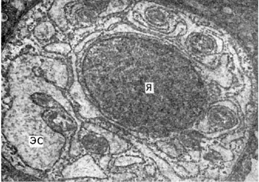 136. Миеломная клетка. Резко расширенные канальцы эндоплазматической сети (ЭС) заполнены скоплениями белка - парапротеина.