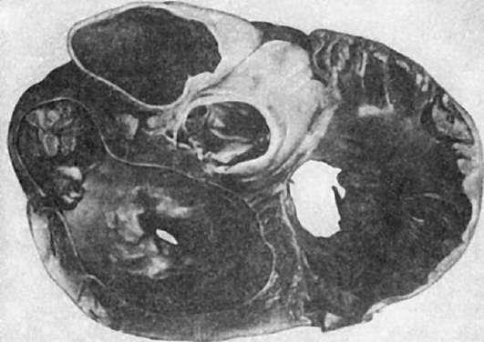 Патологическая анатомия. Типичным для идиопатического миокардита является распространенное поражение миокарда всех отделов сердца. Оно увеличено в размерах, дряблое, полости растянуты, как правило, с тромботическими наложениями; мышца на разрезе пестрая, клапаны интактны. Выделяют 4 морфологических (гистологических) типа идиопатического миокардита (Рапопорт Я.Л., 1951): дистрофический (деструктивный); воспалительно-инфильтративный; смешанный; сосудистый.