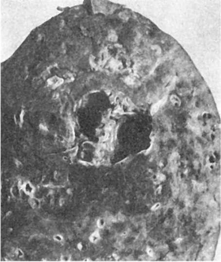 бронхогшевмонии. В большинстве случаев абсцесс сообщается с просветом бронхов (дренажные бронхи), через которые гной выделяется с мокротой.Бронхогенный абсцесс легкого появляется при разрушении стенки бронхоэктаза и переходе воспаления на соседнюю легочную ткань с последующим развитием в ней некроза, нагноения и формированием полости - абсцесса. Стенка абсцесса образована как бронхоэктазом, так и уплотненной легочной тканью. Бронхогенные абсцессы легкого обычно бывают множественными. Острый абсцесс легкого иногда заживает спонтанно, но чаще принимает хроническое течение.
