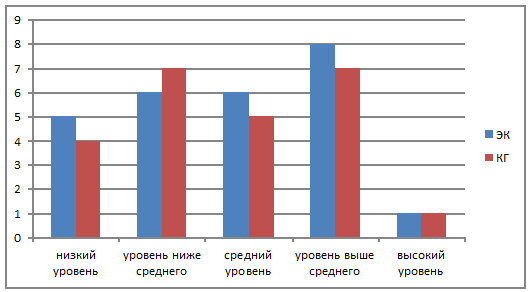 выше среднего. Это 8 человек в экспериментальной группе и 7 - в контрольной