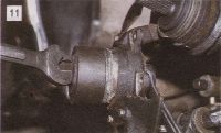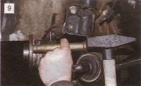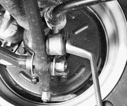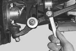 Если надо заменить только стойки стабилизатора или их втулки, отверните гайки крепления стоек к рычагам и сбейте стойки со штанги стабилизатора деревянным или полимерным молотком.