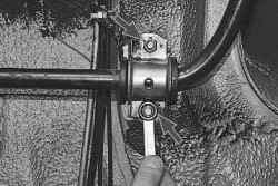 11. Заверните гайки крепления стоек до выбора зазоров между стойками и рычагами.