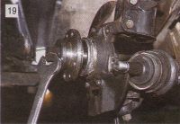 При другом способе демонтажа ступицы, вначале отсоединяем шаровую опору и выводим из ступицы ШРУС.