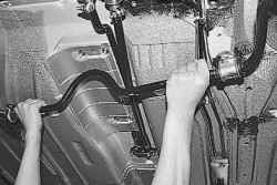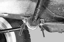 4. Отверните по две гайки крепления кронштейнов штанги стабилизатора с обеих сторон автомобиля.