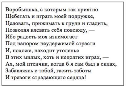 описывающего взаимодействие между Лесбией и ее ручным воробьем. Сразу отметим,
