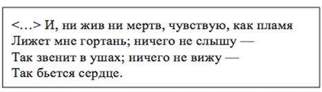 Не покидая стихотворного пространства LI стихотворения, остановимся на связке существительного и глагола "flamma demanat", метафорически изображающей явление страсти и также подверженной ряду преобразований. Для первого слова в приведенном двусоставном обороте переводчица сохраняет буквальное значение - "пламя", следуя традиции, поддерживаемой ее коллегами-предшественниками, в частности, С.В. Шервинским и М.А. Амелиным. Но при поиске аналога для глагола "demanare" Торпусман отказывается от дословного эквивалента "стекает", заменяя его на форму "лижет", которая, оказавшись в заданном контексте, обретает "смысловую" подвижность и становится способной к вариативному прочтению.