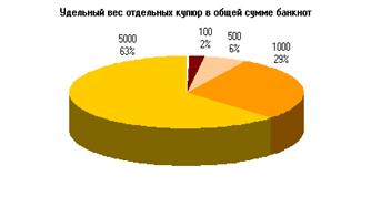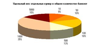 Рис. 3. Удельный вес отдельных банкнот и момент в