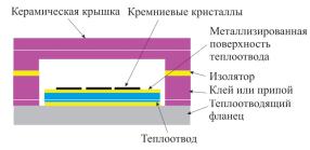 Традиционный материал теплоотвода – ВеО-керамика, характеризуемая малыми диэлектрическими потерями в СВЧ-диапазоне частот и высокой теплопроводностью. Вместе с тем производство ВеО-кера- мики чрезвычайно токсично. Сейчас в качестве альтернативы ВеО-ке- рамике наиболее перспективной представляется высокотеплопроводная керамика на основе нитрида алюминия (АlN). По коэффициенту теплового расширения этот материал хорошо согласуется с кремнием, что особенно важно для приборов, выполненных на кристаллах больших размеров. К тому же, в отличие от ВеО-керамики, теплопроводность АlN-керамики не уменьшается при нагреве транзистора.
