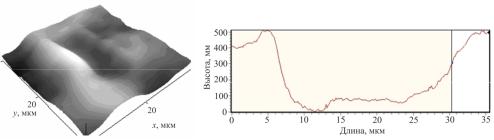 Возможность измерения нанотвердости тонких покрытий, которое основано на изнашивании поверхности покрытия алмазным зондом в процессе сканирования при дополнительном нагружении и последующем сканировании тем же зондом поля с изношенным участком при обычном нагружении для определения объема изношенного материала (рис. 6.23).