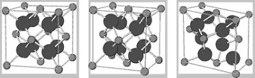 Диоксид циркония обладает полиморфизмом. Он существует в трех определенных кристаллических модификациях: моноклинной, тетрагональной и кубической; кроме того, под высоким давлением существует орторомбическая форма (рис. 2.2). От температуры плавления (2680 °C) до 2350 °C существует фаза с кубической структурой типа флюорита CaF2. Ниже этой температуры, до 1170 °C (по другим данным – до 1150 °C), равновесной является тетрагональная фаза (плотность 6,106 г/см3), а при более низкой температуре – моноклинная (плотность 5,56 г/см3).
