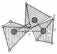 Нитрид кремния – единственное промежуточное соединение, существующее в системе Si-N в конденсированном состоянии. Нитрид кремния существует в трех различных модификациях: α-, β- и γ-Si3N4. Модификации α и β кристаллизуются в гексагональной сингонии со структурой типа фенакита. Основным структурным элементом являются тетраэдры SiN4 (рис. 2.5). Тройки таких тетраэдров связаны общим атомом азота и расположены под углом около 120° друг кдругу. Структуры α- и β-Si3N4