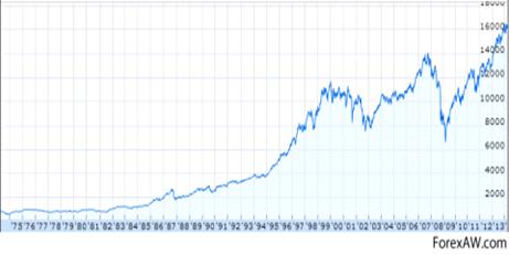 1. Исторический график динамики индекса Dow Jones за период 1974-2014 г.г.