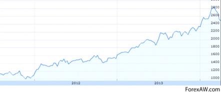 2. График индекса NYSE Arca Tech 100 за период 2003-2014гг.
