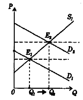 Е1 - равновесная величина продукта (Q), равная (Q1) с нереализованным рациональным эффектом; - оптимальная величина продукта с реализованным рациональным эффектом (на рис.3 - это эффект, предоставляемый потребителям посредством налоговых льгот, субсидий; на рис. 4 - это эффект, предоставляемый производителям); - ценовые выгоды потребителя; - ценовые выгоды производителя.