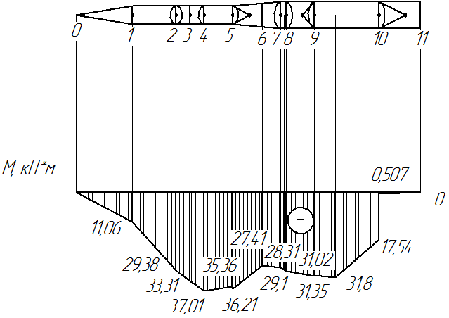 Значения эпюр M и Q по длине летательного аппарата находим с помощью программы QM.exe. Распечатка результатов работы программы приведена ниже. Эпюры представлены на рисунке 9 и рисунке 10.