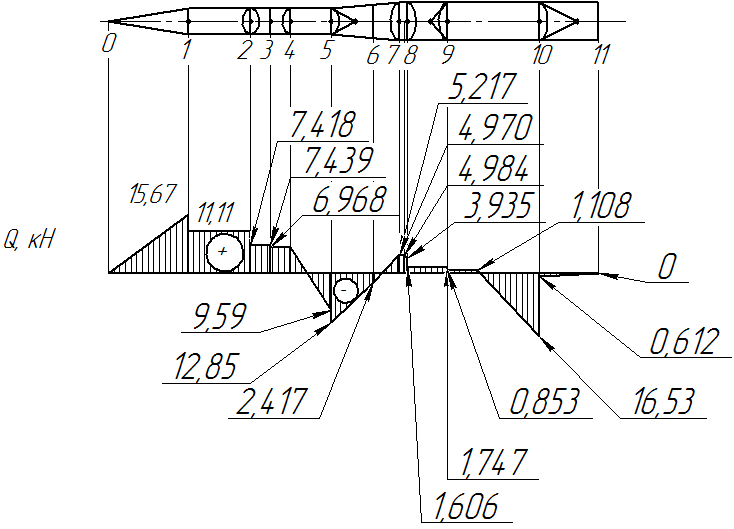 Рисунок 9 — Эпюра перерезывающей силы Q