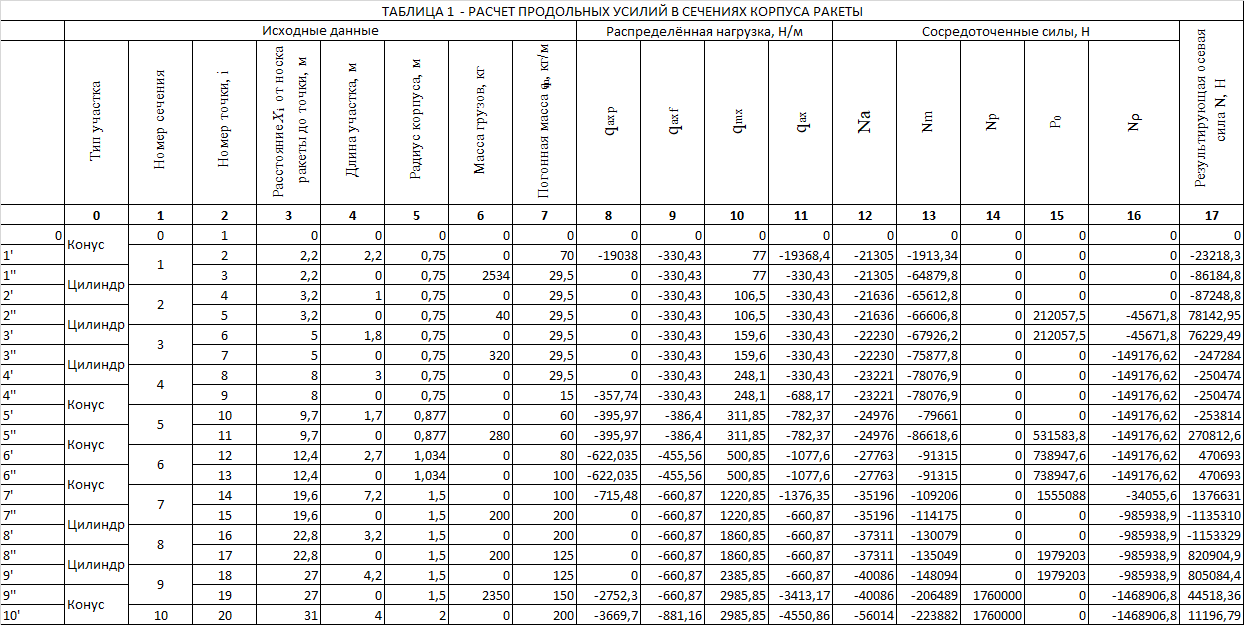 силы представлены в Таблице 1 на странице