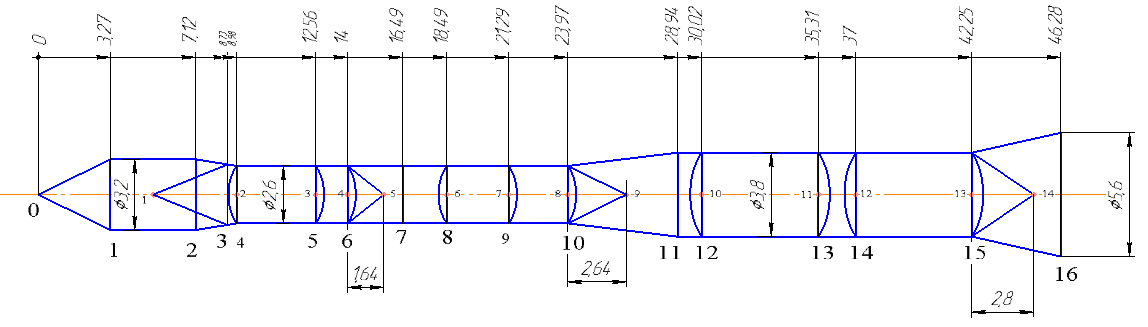 Для участка 15-16, представленного на рисунке 5 угол конусности будет равен: