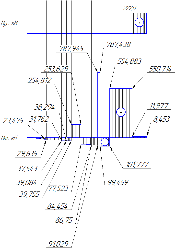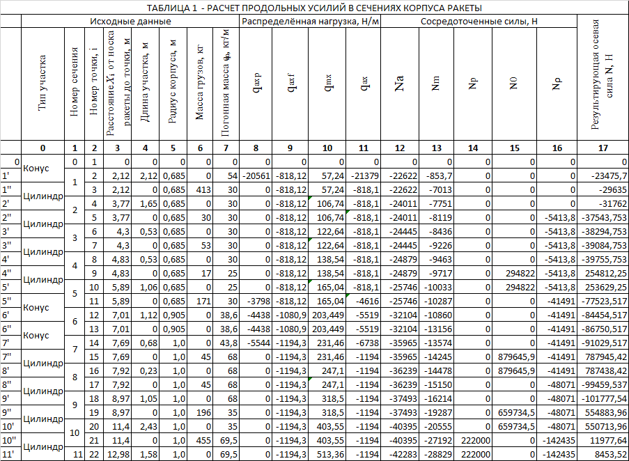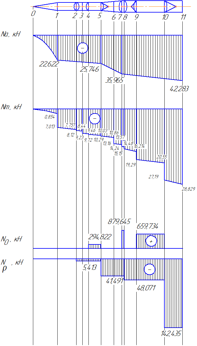 Так как все баки имеют цилиндрическую форму, усилия на переднем и заднем шпангоутах будут одинаковыми, отличаясь лишь знаком.